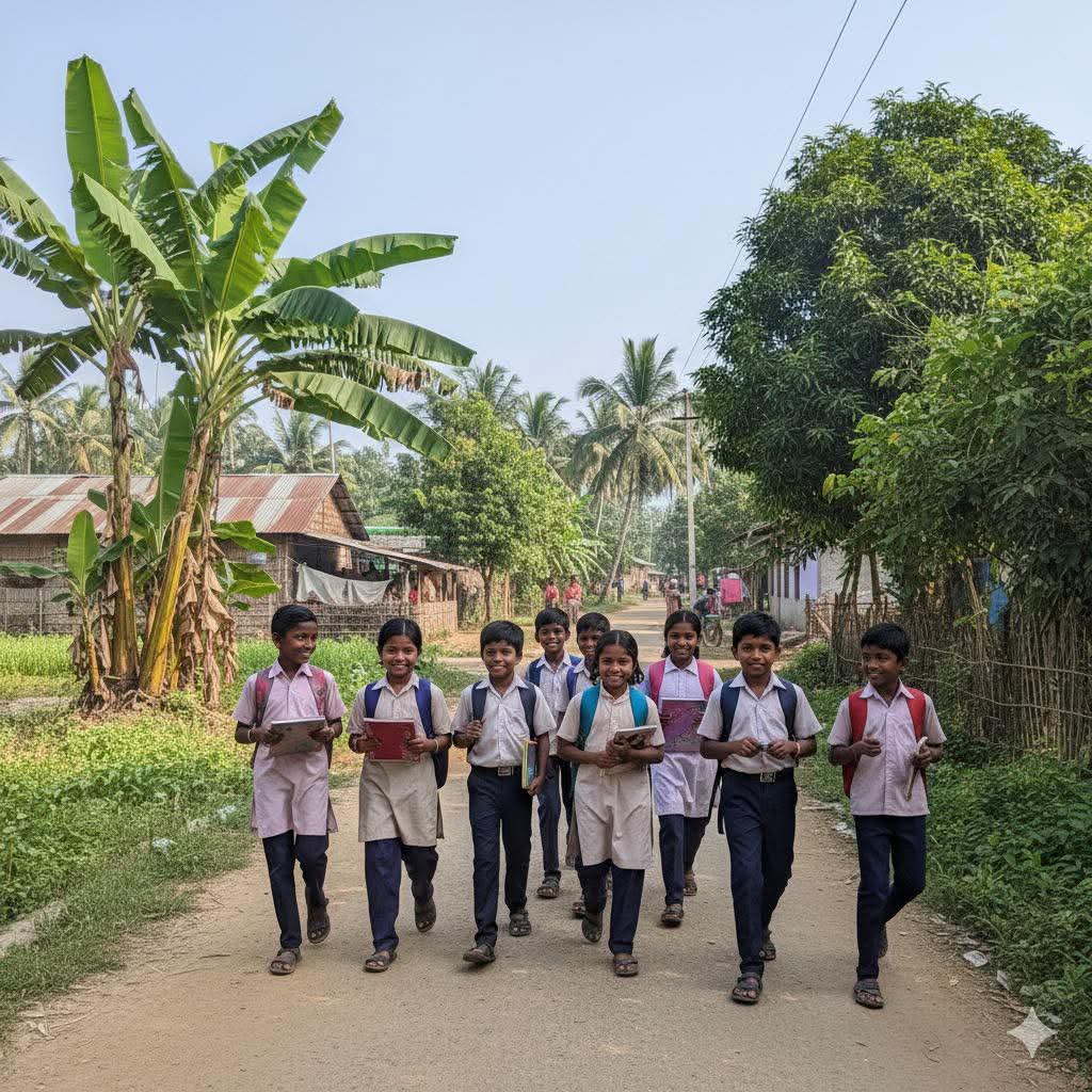 আপনি কি কখনো কাঁচা রাস্তা ধরে স্কুলে গেছেন? কলা গাছের ছায়া, পায়ের...
